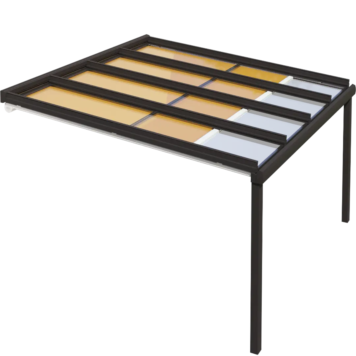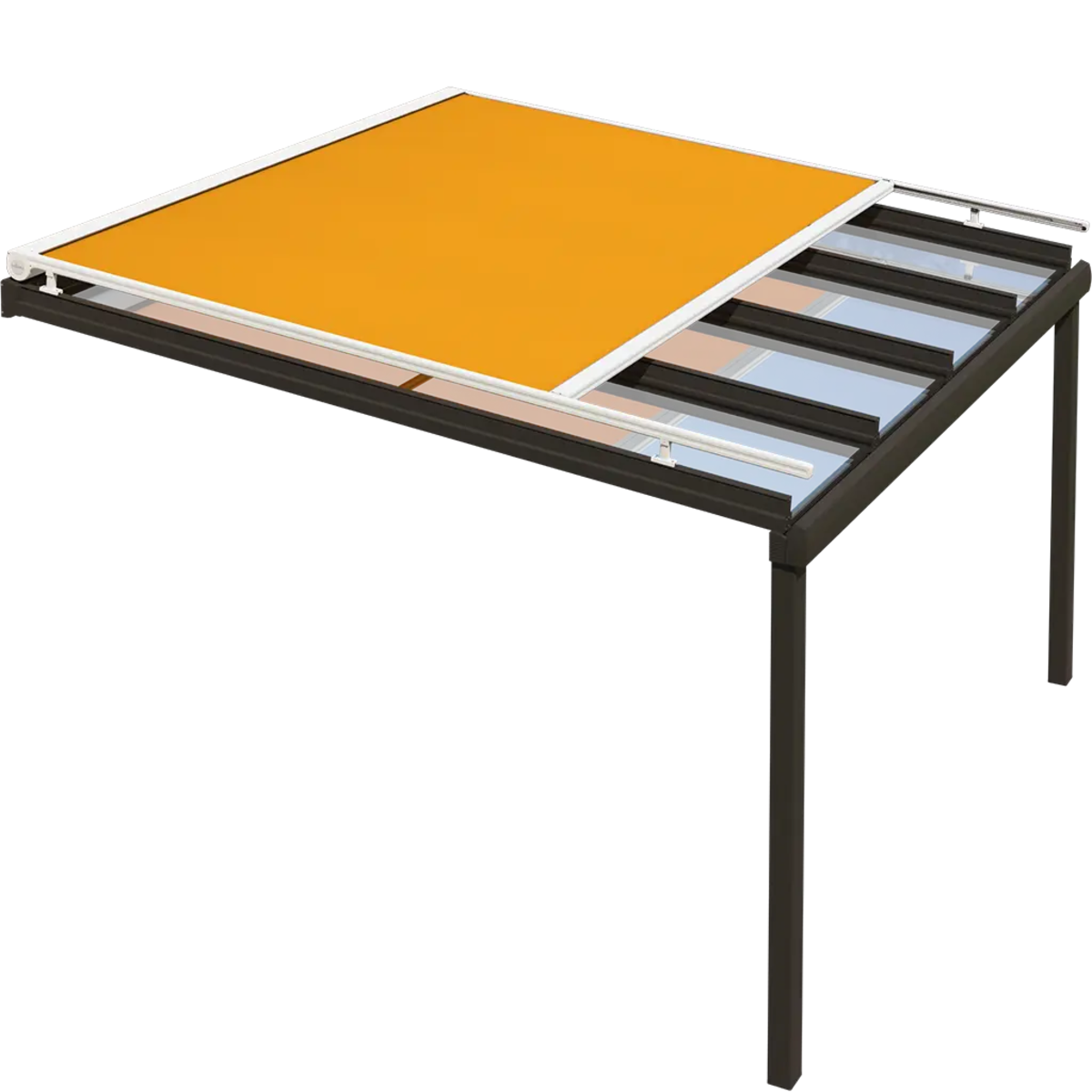 Ved montering over taget reducerer markisen både lys og varme.