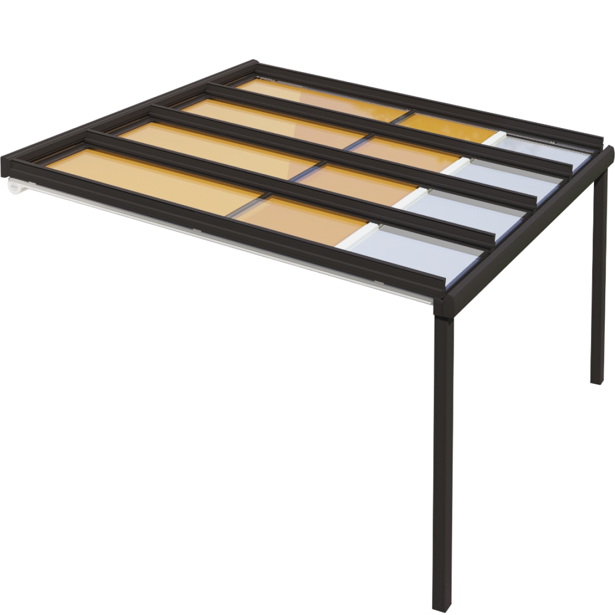 Ved montering under tag med variabel-nedfald har Cafe 500 en max bredde på 400cm og max udfald 450cm.