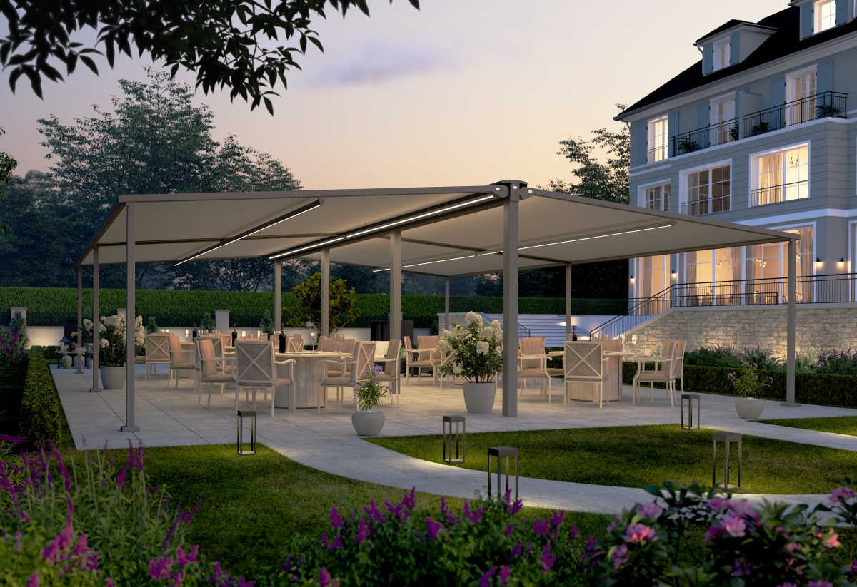 Cafe 600Z Portofino er en meget solid og vindstærk Zip Pergola.