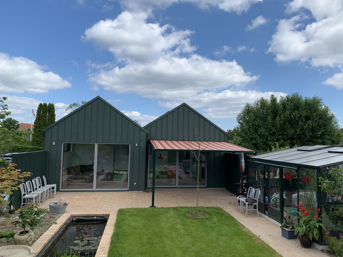 ved 2 beslag og 2 ben har Zip pergola en max bredde på 600cm og et max udfald på 500cm (areal på 30 m2 pr. pergola)