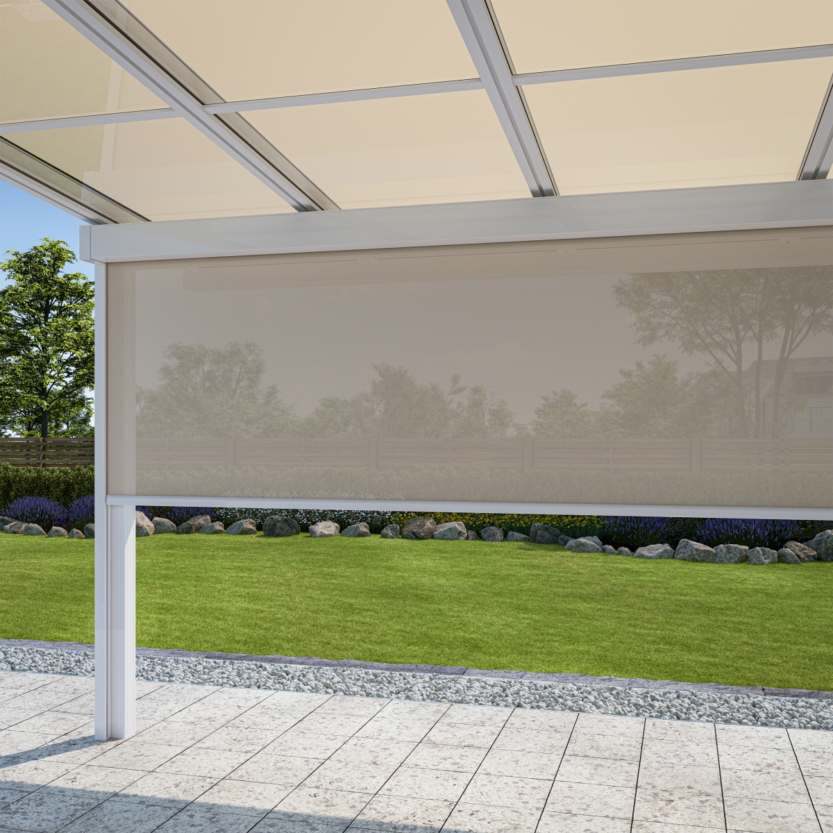 ZIP-screenen er et lodret vindtæt udvendig rullegardin. Dens unikke lynlåssystem holder stoffet fastlåst i sideskinnerne. ZIP-screenen er desuden insektblokerende, som kan tåle helt op til vindhastigheder på 20 m/s. i ZIP-screenen fastholdes dugen ved hjælp af en lynlås.
