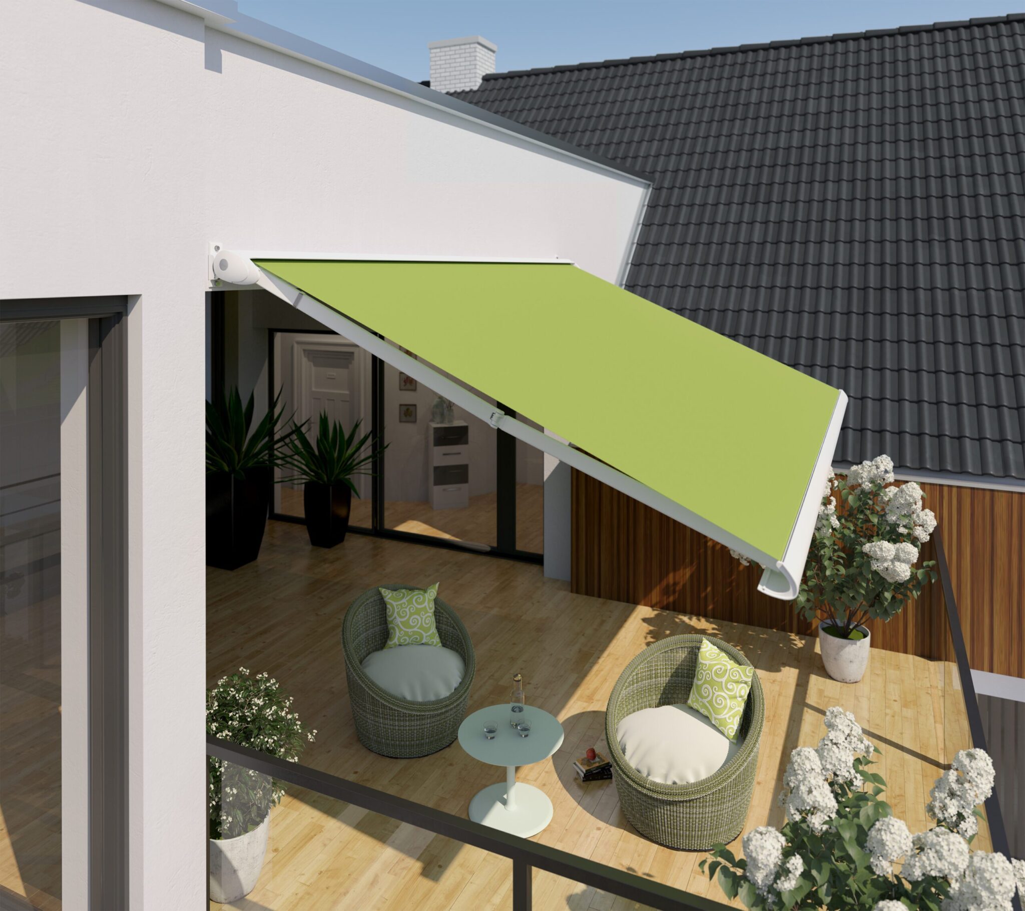 Stil 500 er en flot, stilren og elegant hellukket kassettemarkise, som kun skal fæstnes på 2 beslag.