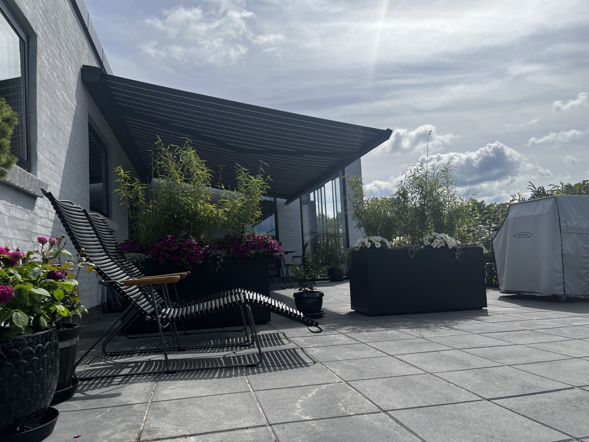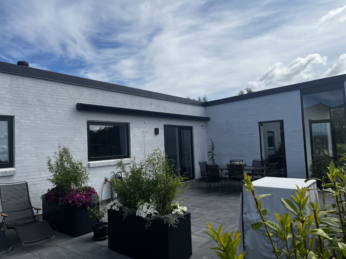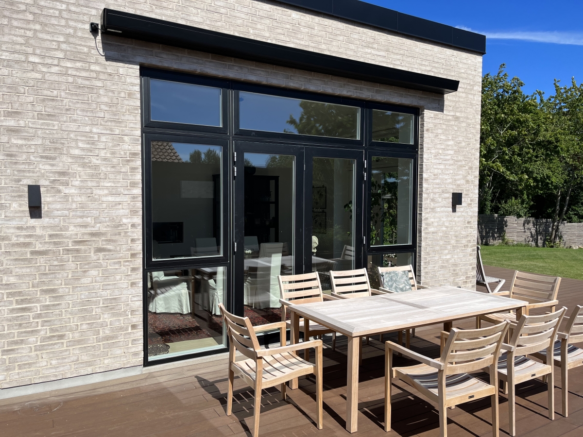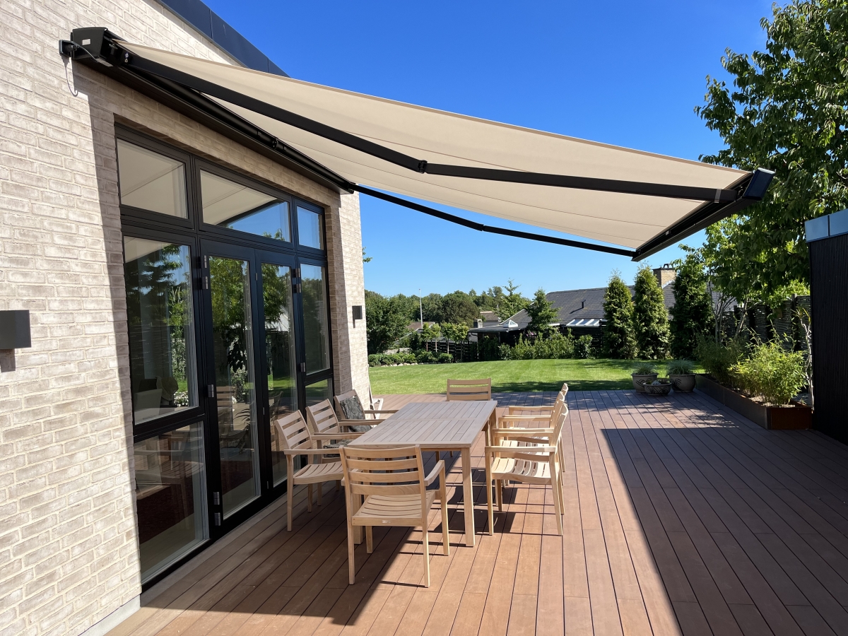 Stil 900 er en tysk kvalitets kassettemarkise, som er vores mest strømlinet markise i høj kvalitet. Den er enormt flot på en funkisvilla.