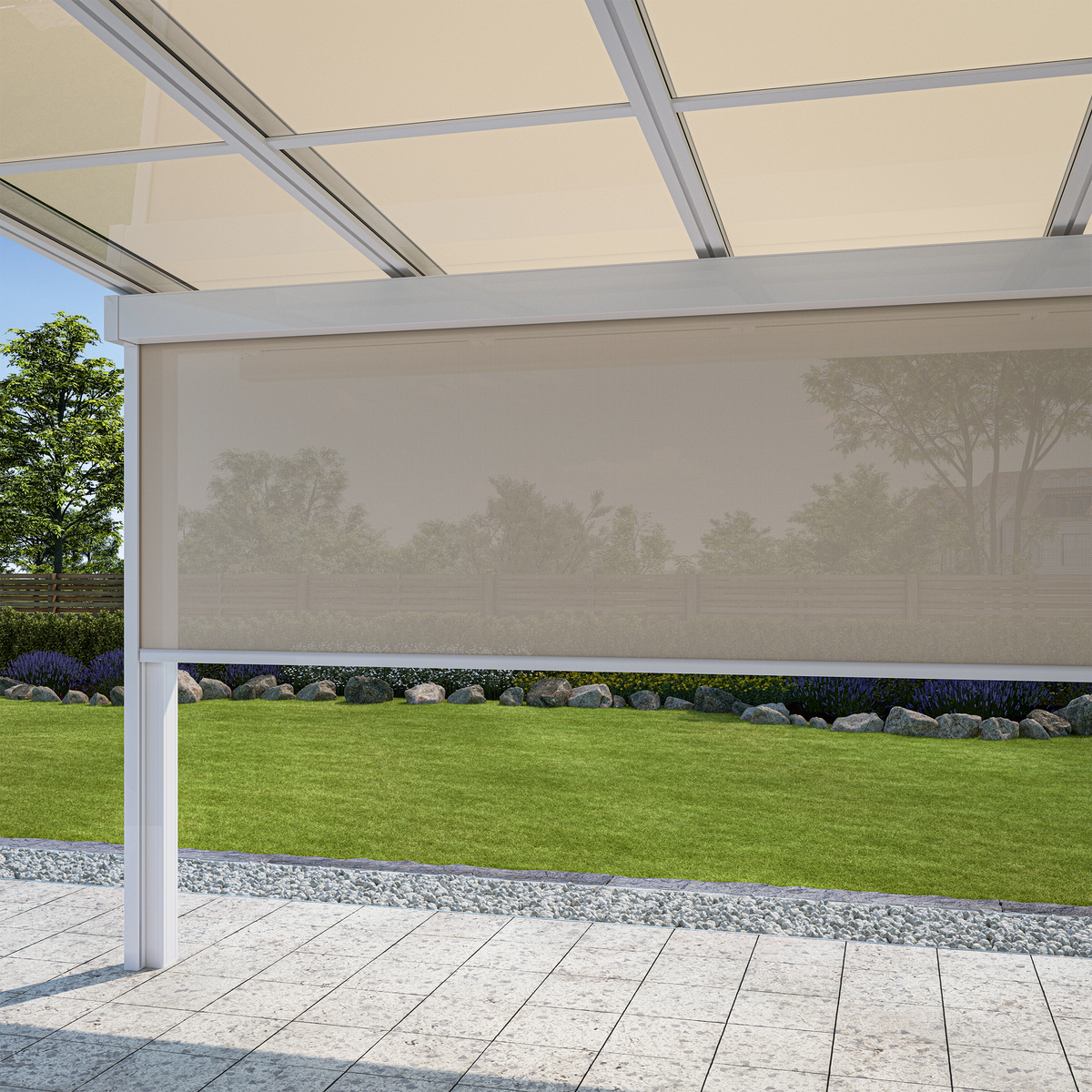 ZIP-screenen er et lodret vindtæt udvendig rullegardin. Dens unikke lynlåssystem holder stoffet fastlåst i sideskinnerne. ZIP-screenen er desuden insektblokerende, som kan tåle helt op til vindhastigheder på 20 m/s. i ZIP-screenen fastholdes dugen ved hjælp af en lynlås.